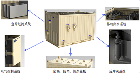 l 集裝箱式瓦楞結(jié)構(gòu)簡單緊湊,附屬設(shè)備少,占地面積小,僅為普通快濾池1/4