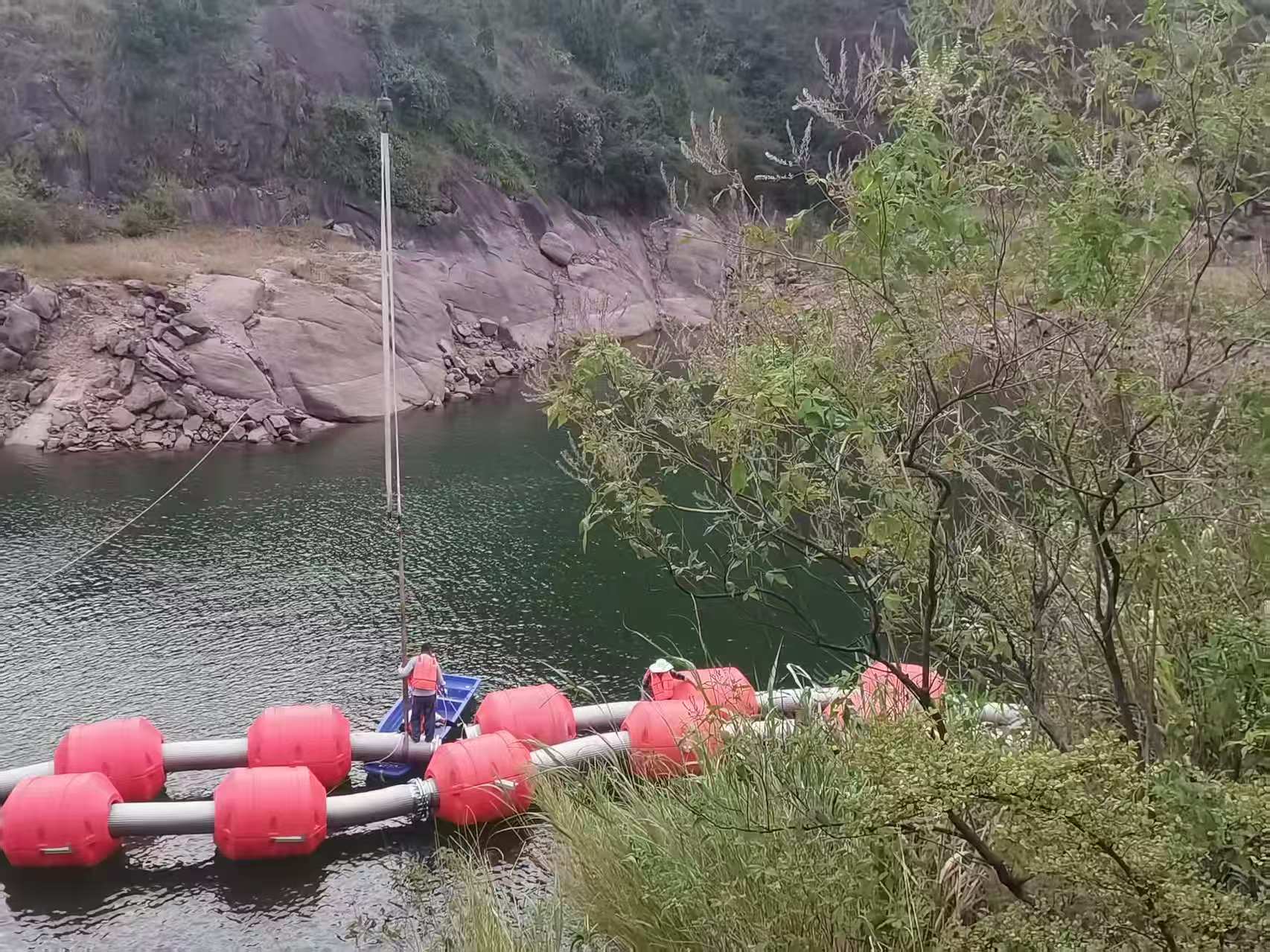 3. 浮管式:HDPE管或鋼管配浮筒漂浮水面,最長可達800米,適用于河床平緩、取水點遠的水域。