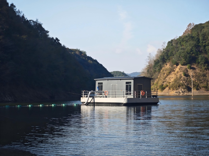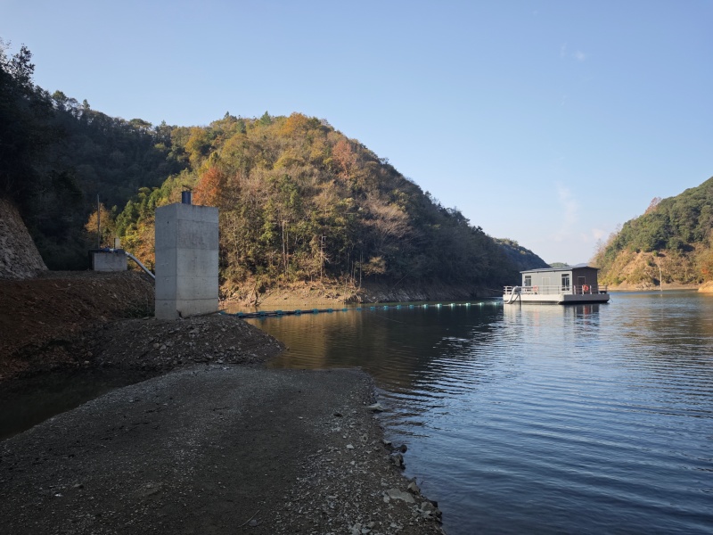 同時,船載立式長軸深井泵憑借低功率、高揚程、小流量的核心優勢,可實現每小時100立方米的不間斷取水,精準抽取水下800毫米左右的優質水源,水質干凈,極大地降低了從直取水到飲用水的凈化處理工藝,為當地居民飲用及生產供水需求筑牢“水源防線”。尤為值得一提的是,浮船及泵房的造型設計與色彩搭配深度契合周邊自然環境,與青山綠水相映成趣、色調和諧,實現了工程實用性與生態美觀性的完美融合,讓水利設施成為鄉村景致中一道別樣的風景線。